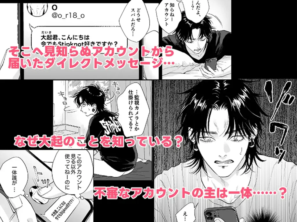 ある日SNSに本名と好きなバンドを知っている人物からDMが届き、大起は送り主のアカウントをのぞいてみます。