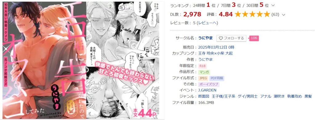 | ジャンル | 王子様/王子系 ゲイ/男同士 アナル/潮吹き/黒髪 執着攻め |
